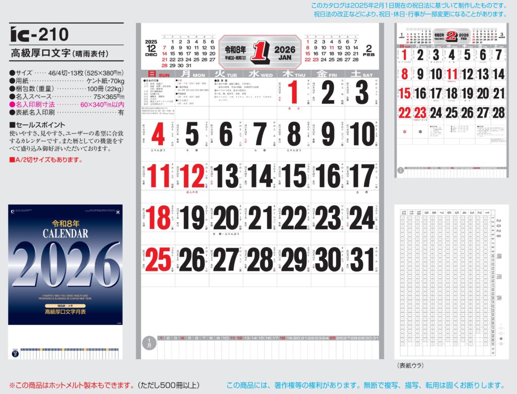品番 : IC-210 46/4×13 高級厚口文字月表 : 2026年版