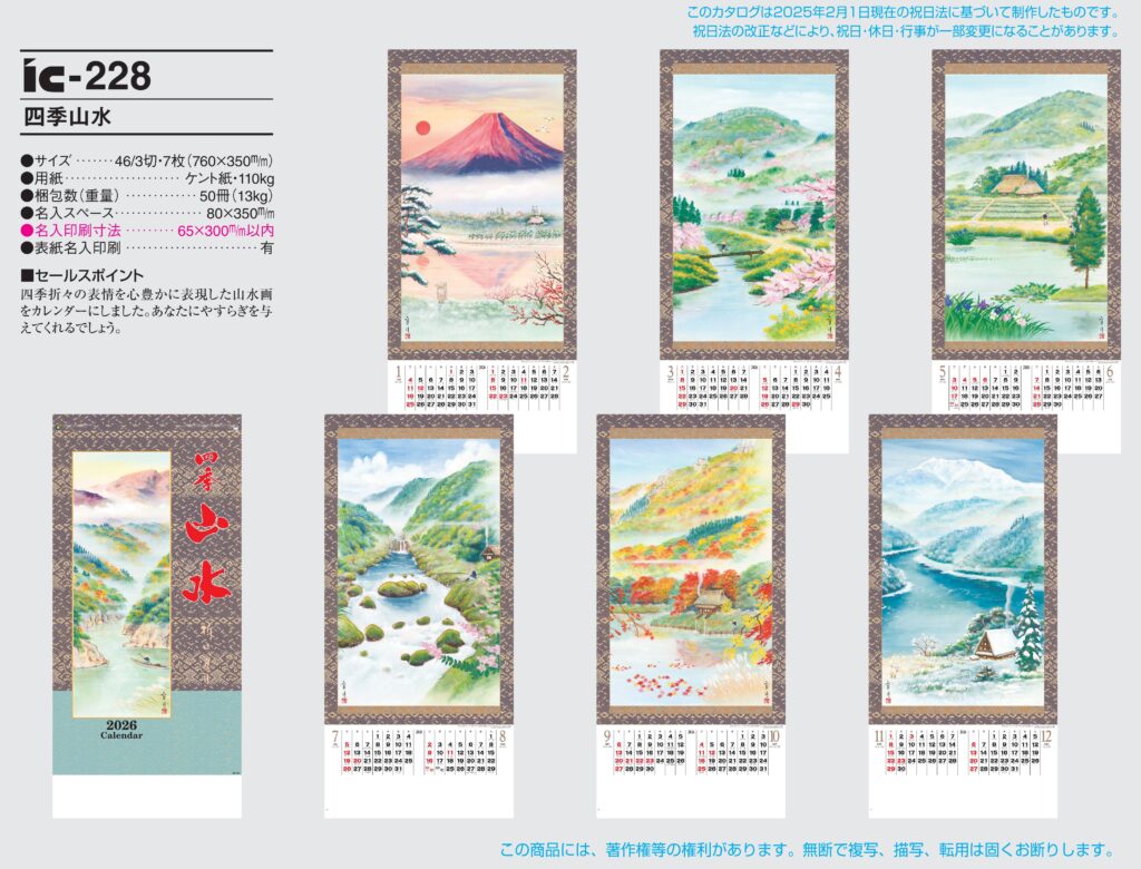 ・名画,2026年度 カレンダー,ic228, 最安値,ic-228,IC228,四季山水