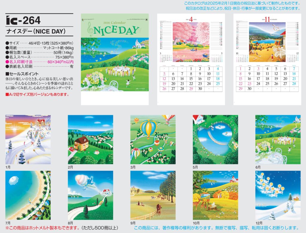・他,2026年度 カレンダー,ic264, 最安値,ic-264,IC264,ナイスデー