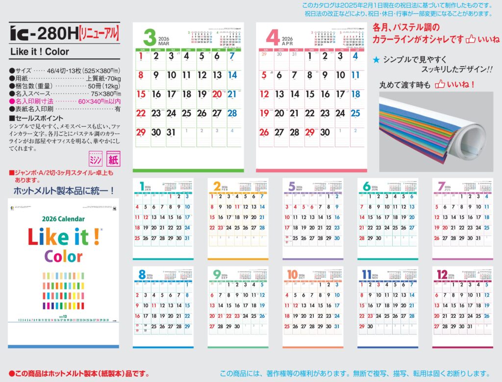 IC-280 , 46/4x13 , Like it! Color 名入れカレンダー class=