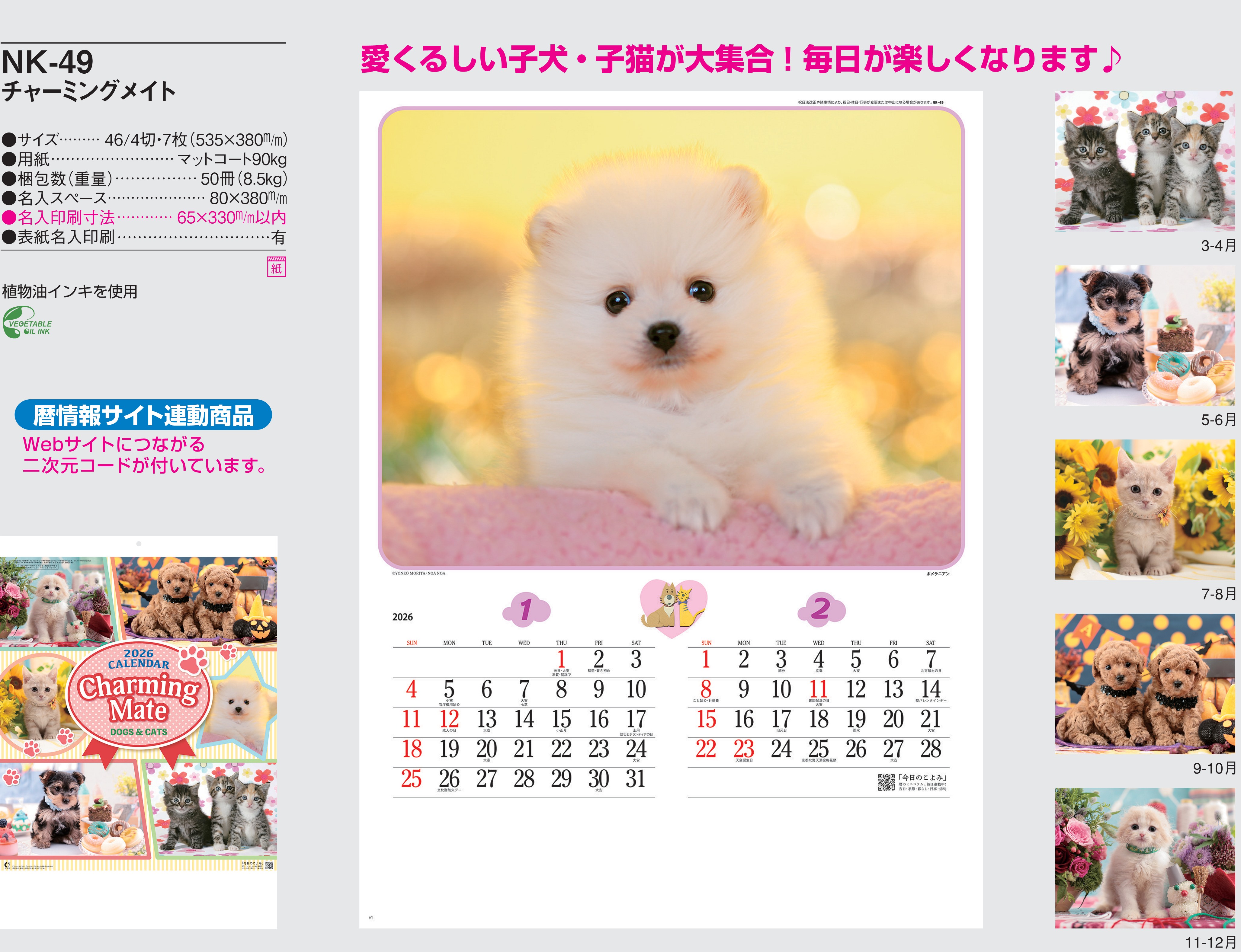 ・ペット,2026年度 カレンダー,nk049, 最安値,nk-049,NK049,チャ-ミングメイト