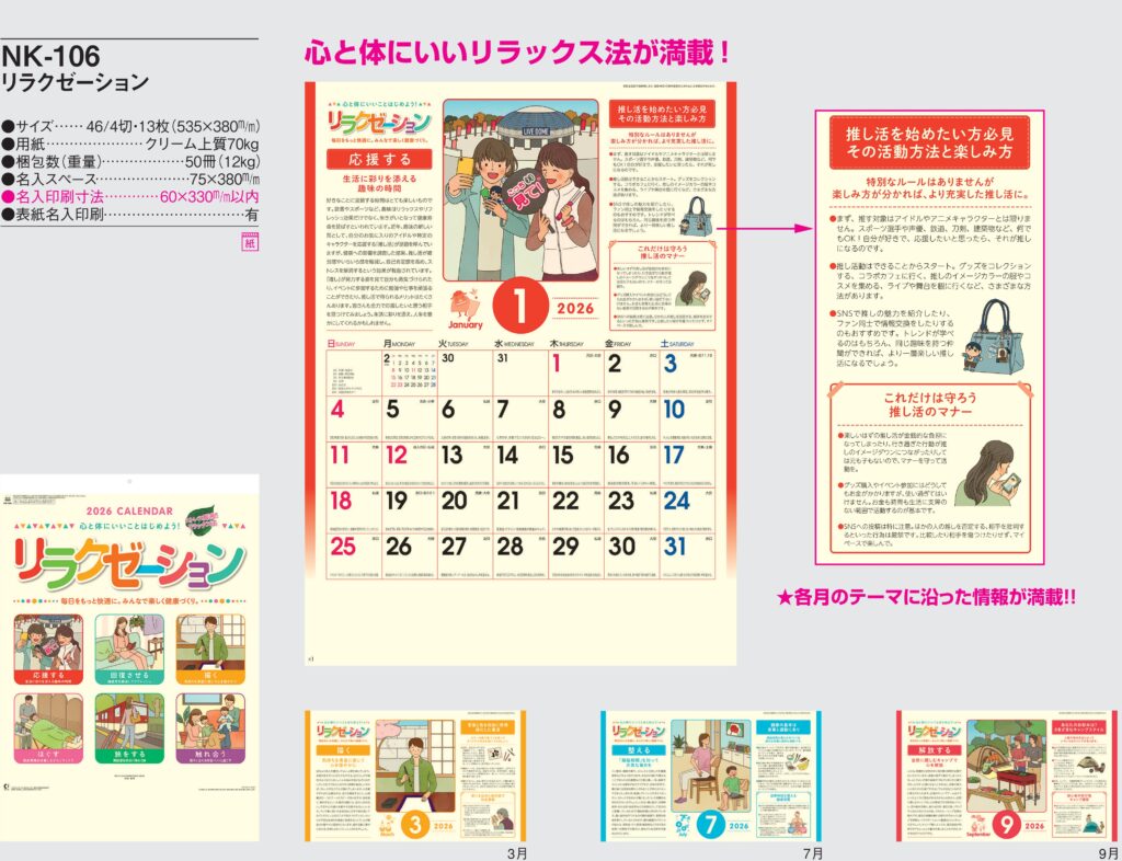 ・ -,2026年度 カレンダー,nk106, 最安値,nk-106,NK106,リラクゼ-ション