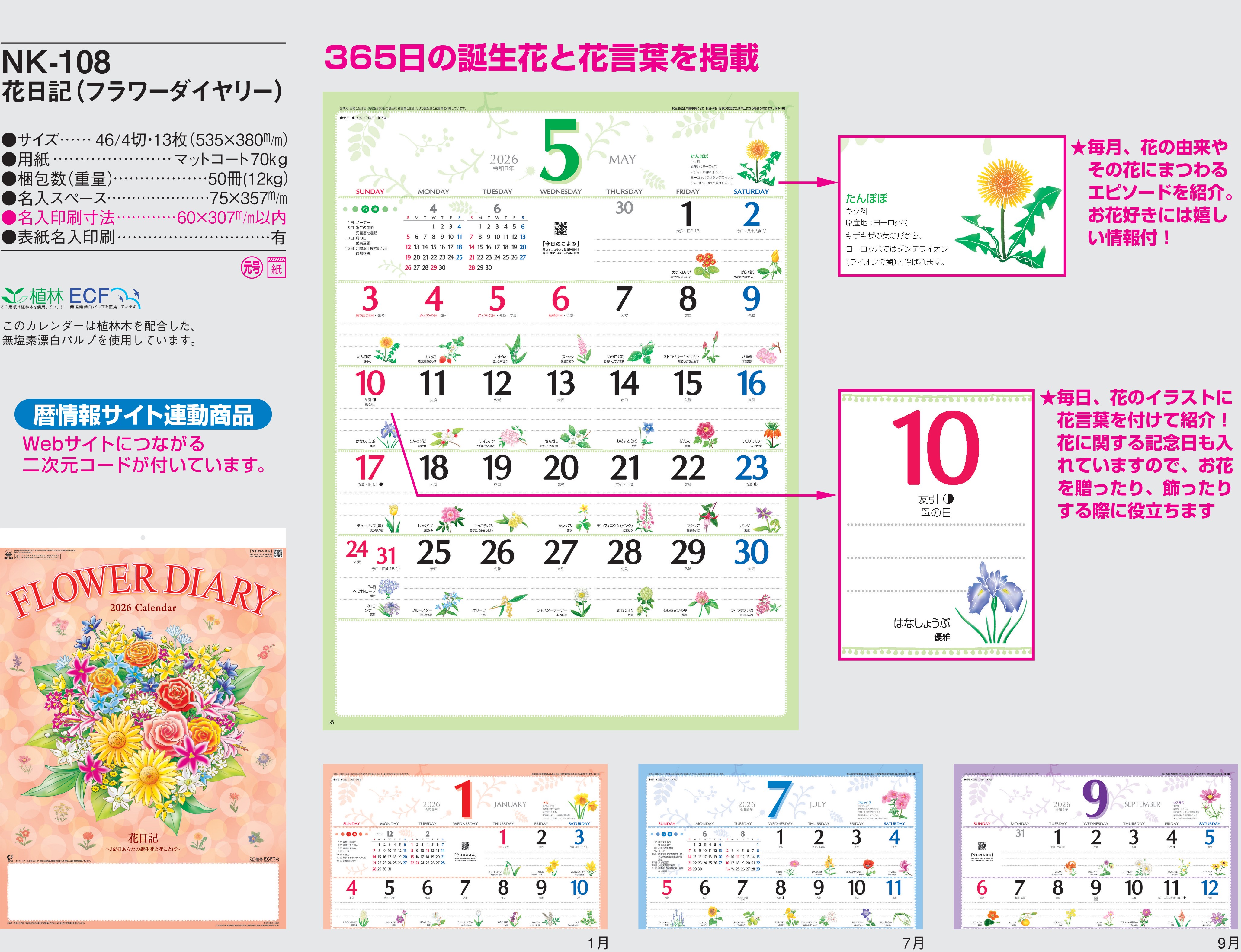 ・ -,2026年度 カレンダー,nk108, 最安値,nk-108,NK108,花日記(フラワ-ダイヤリ-)