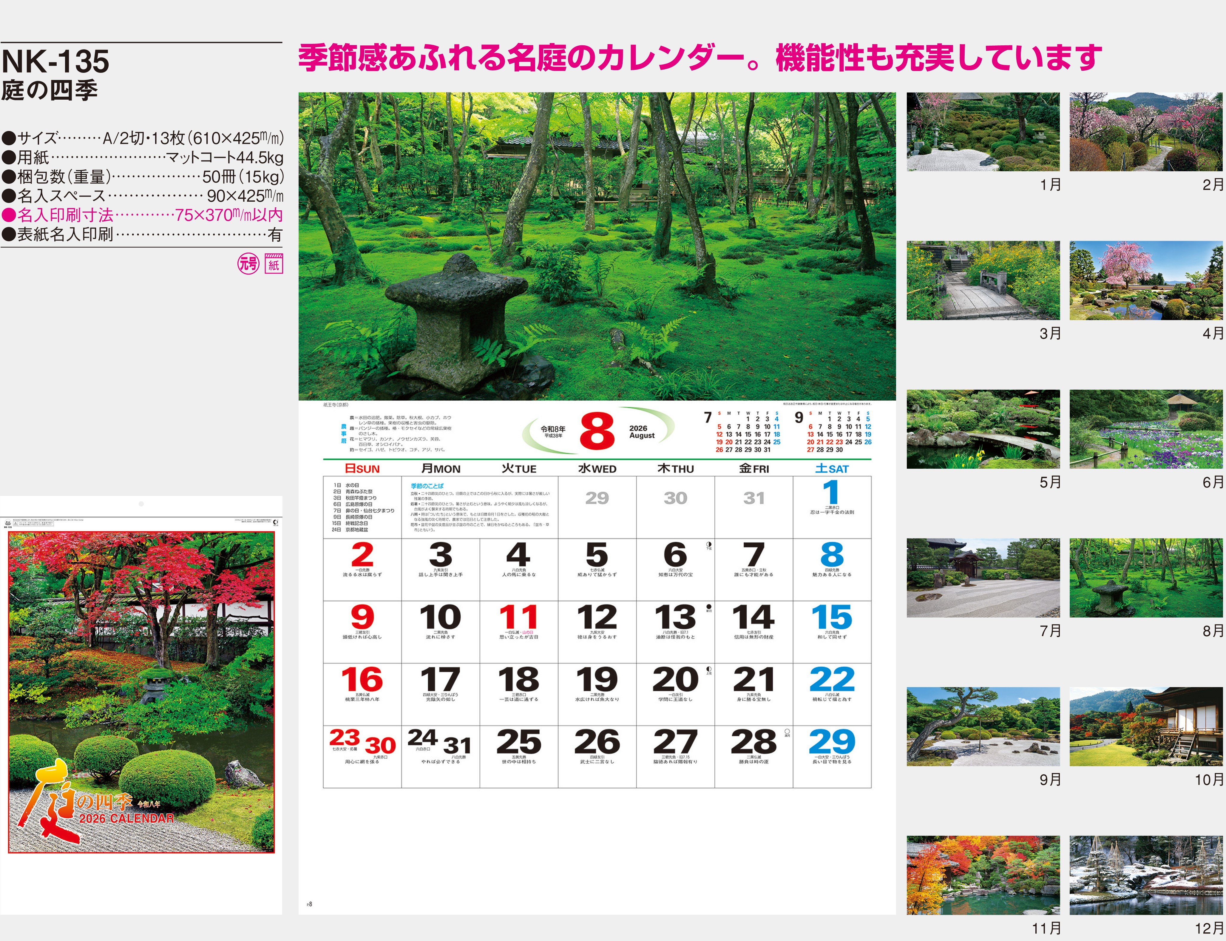 季節感あふれる名庭のカレンダー。機能性も充実しています。 NK135