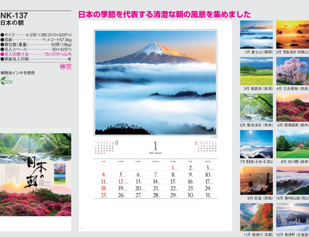 ・風景カレンダー,2026年度 カレンダー,nk137, 最安値,nk-137,NK137,日本の朝