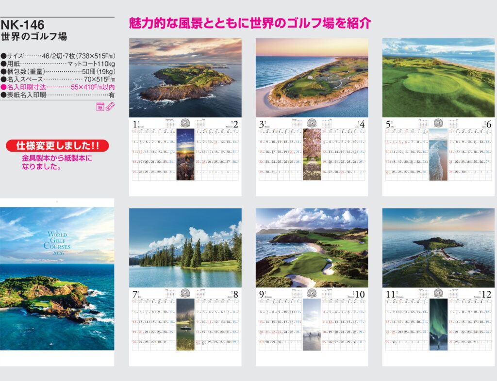 ・B2フィルム,2026年度 カレンダー,nk146, 最安値,nk-146,NK146,世界のゴルフ場