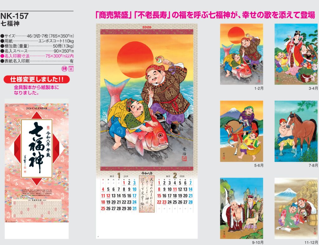 ,2026年度 カレンダー,nk157, 最安値,nk-157,NK157,七福神