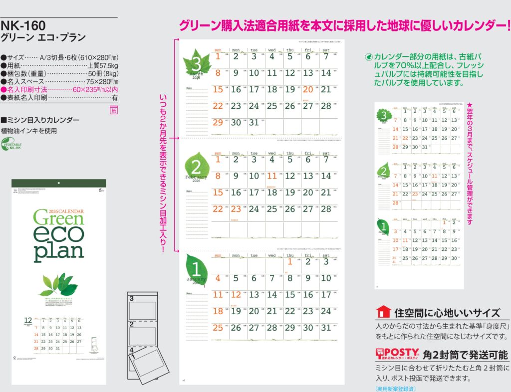 ・ -,2026年度 カレンダー,nk160, 最安値,nk-160,NK160,グリーンエコ・プラン