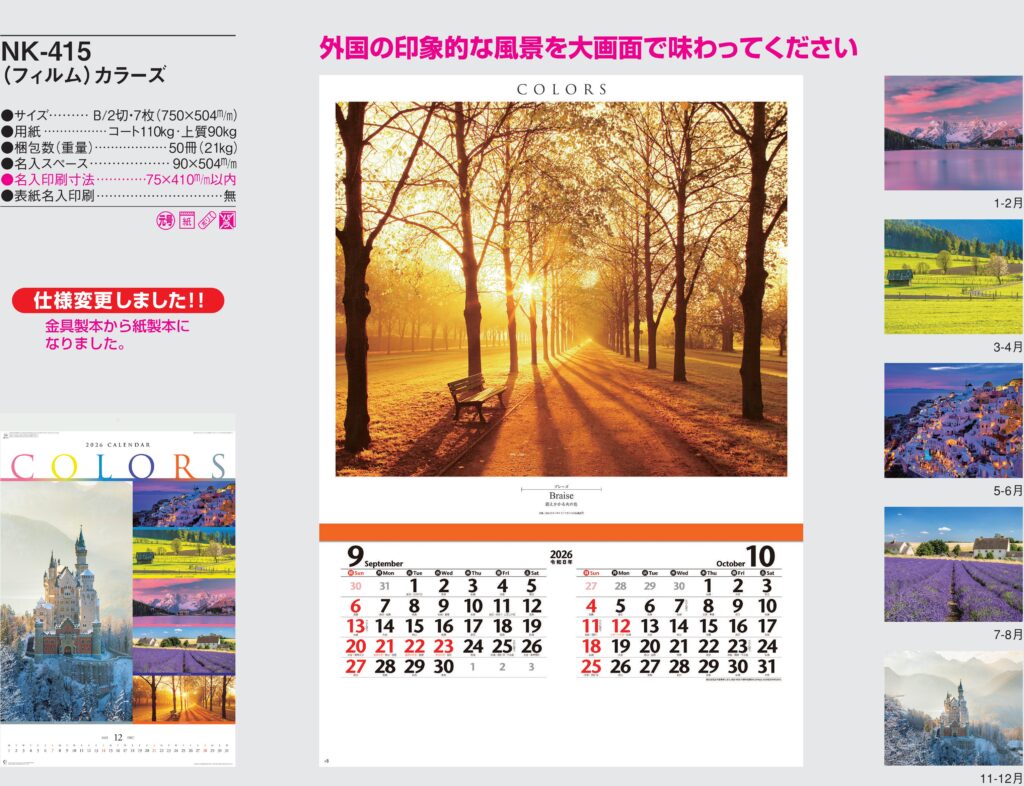 ・B2フィルム,2026年度 カレンダー,nk415, 最安値,nk-415,NK415,カラーズ