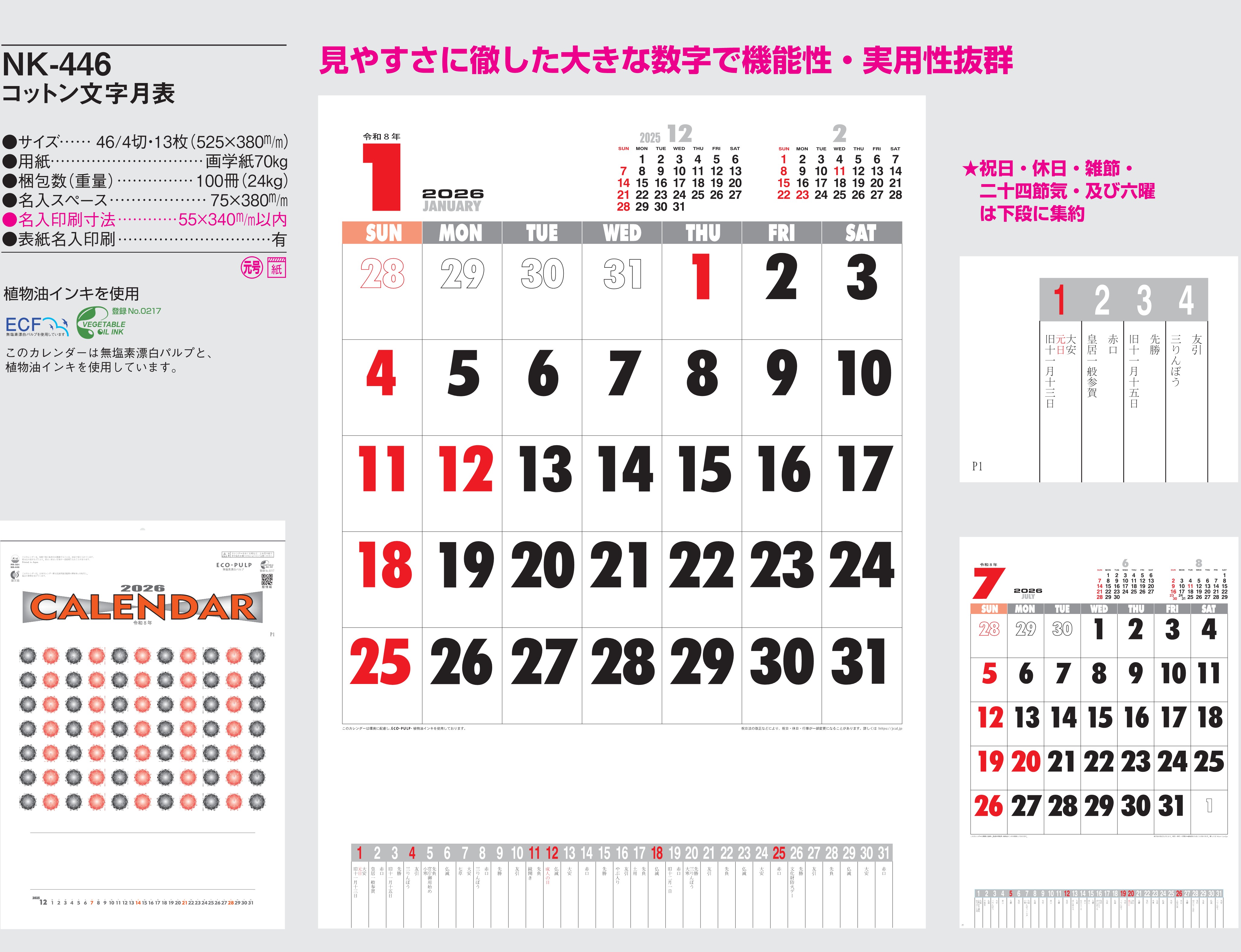 品番 : NK-446 B4-13 コットン文字月表 : 2026年版