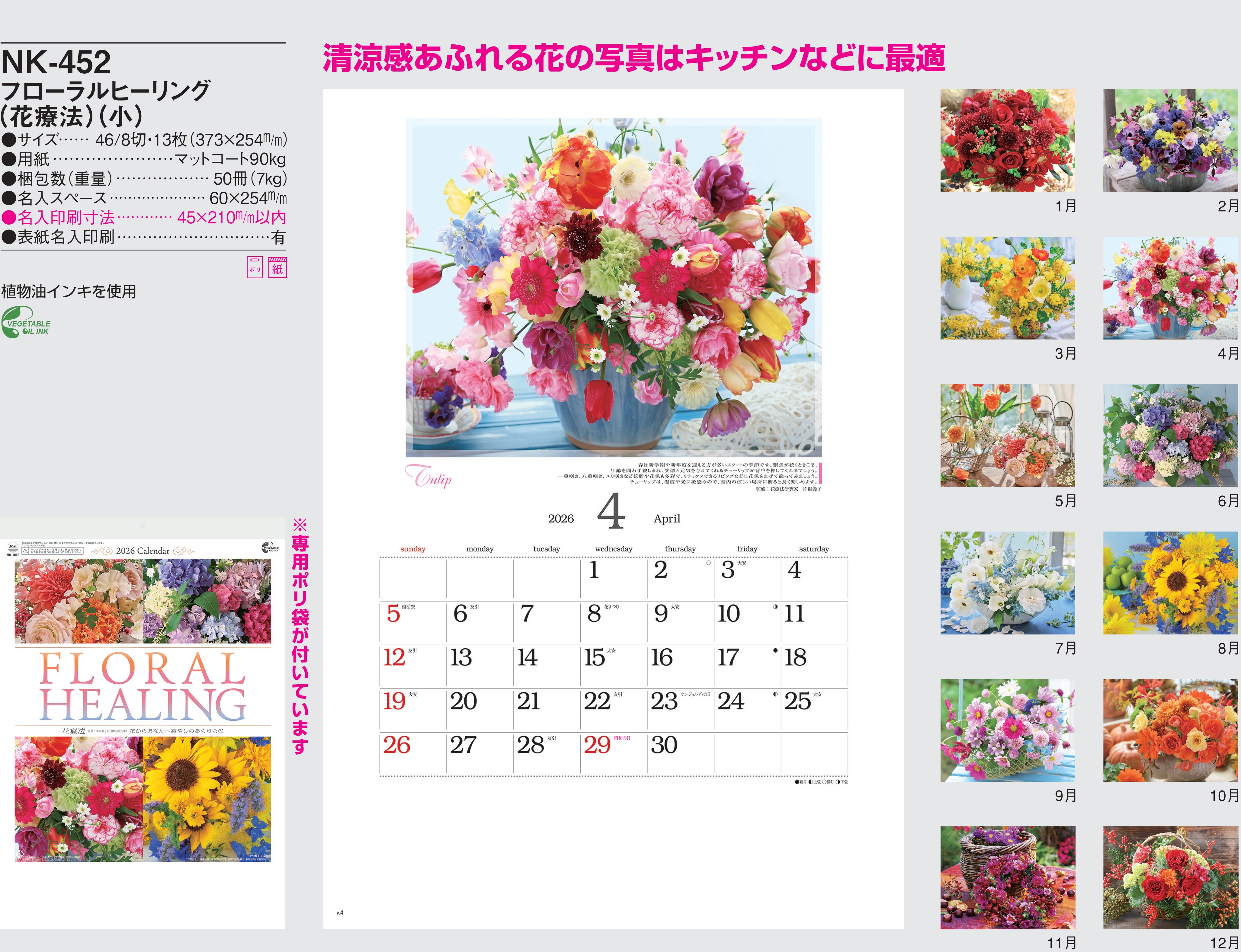 ・コンパクト,2026年度 カレンダー,nk452, 最安値,nk-452,NK452,フローラルヒーリング(花療法)(小)