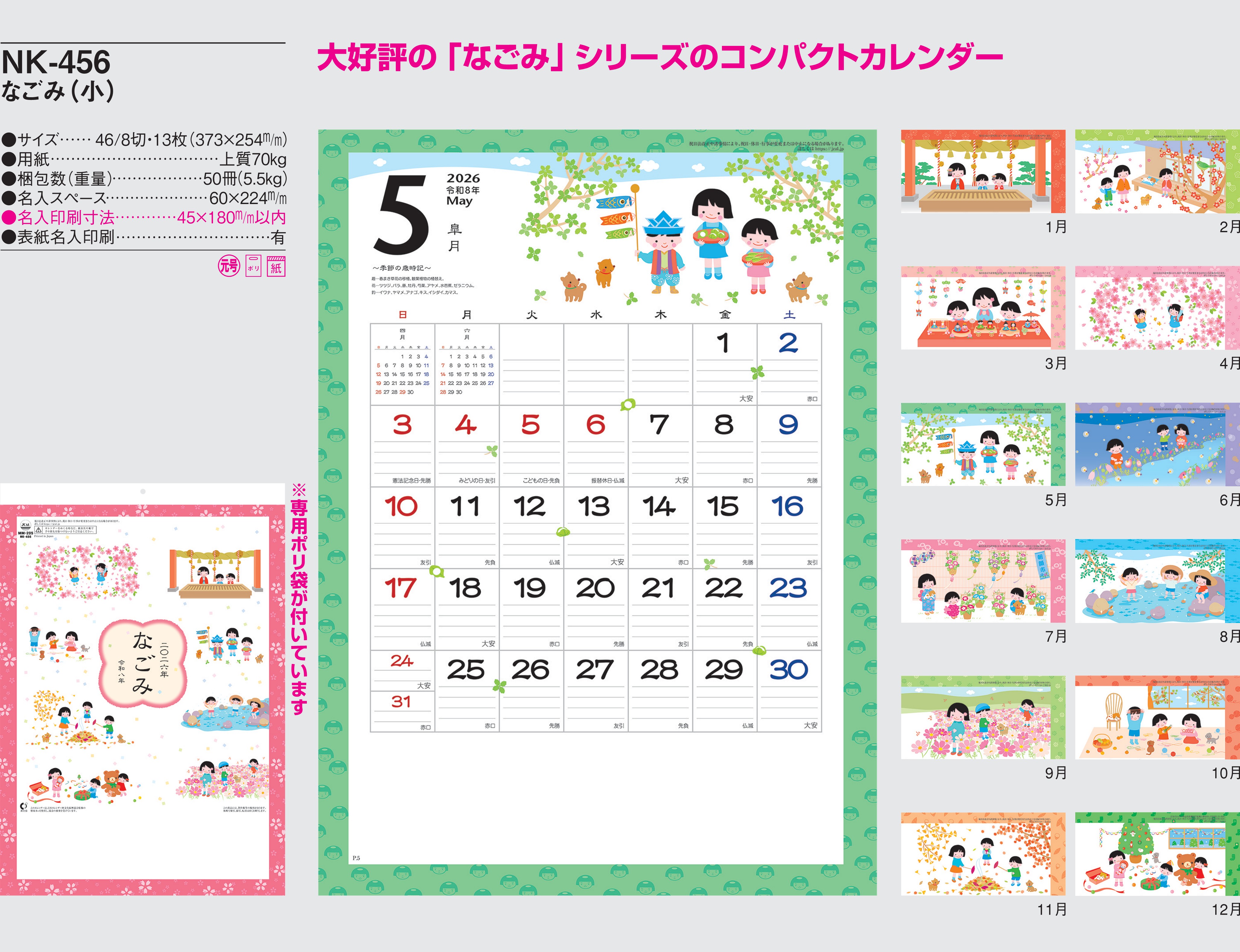 ・コンパクト,2026年度 カレンダー,nk456, 最安値,nk-456,NK456,なごみ(小)