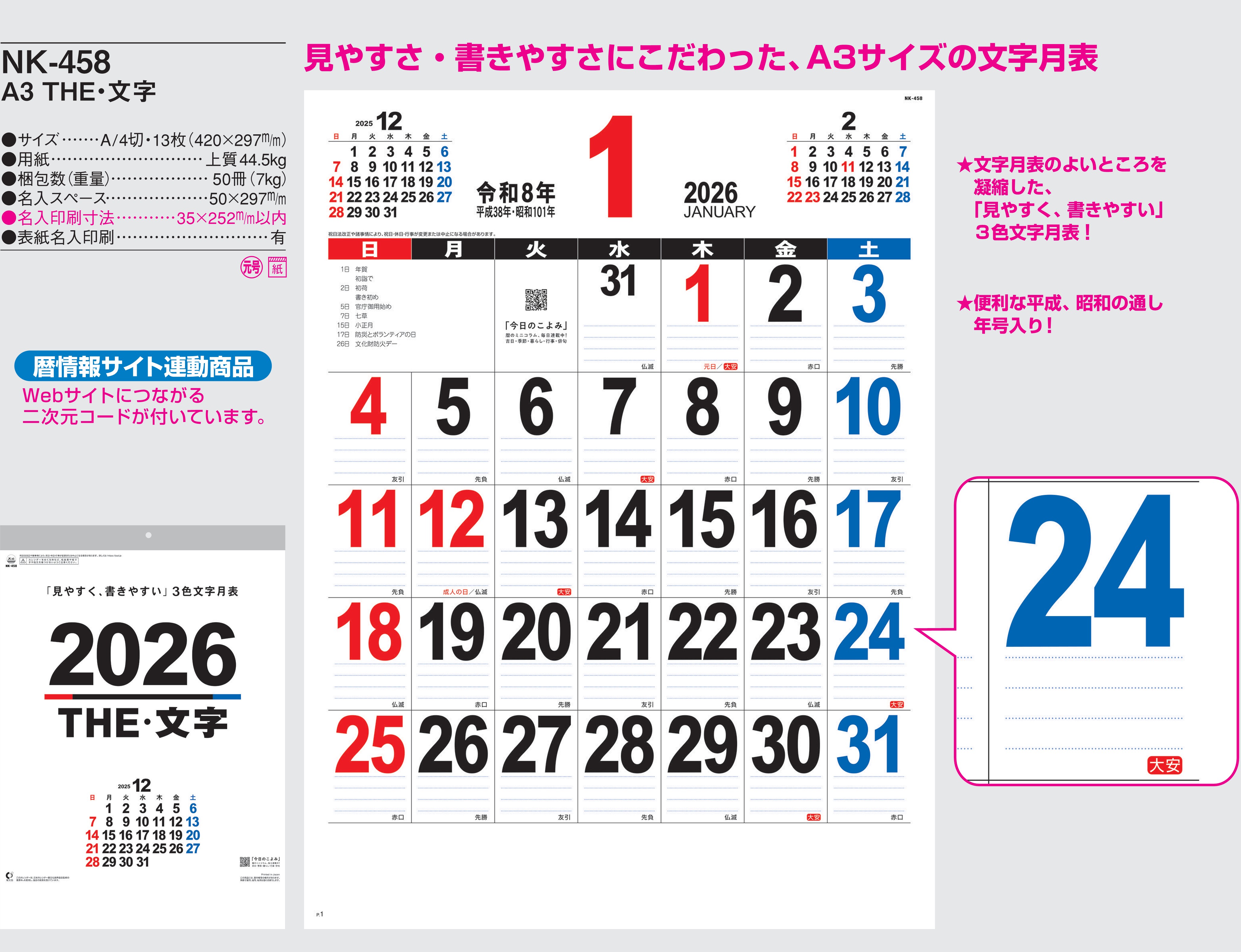 ・ -,2026年度 カレンダー,nk458, 最安値,nk-458,NK458,A3THE・文字