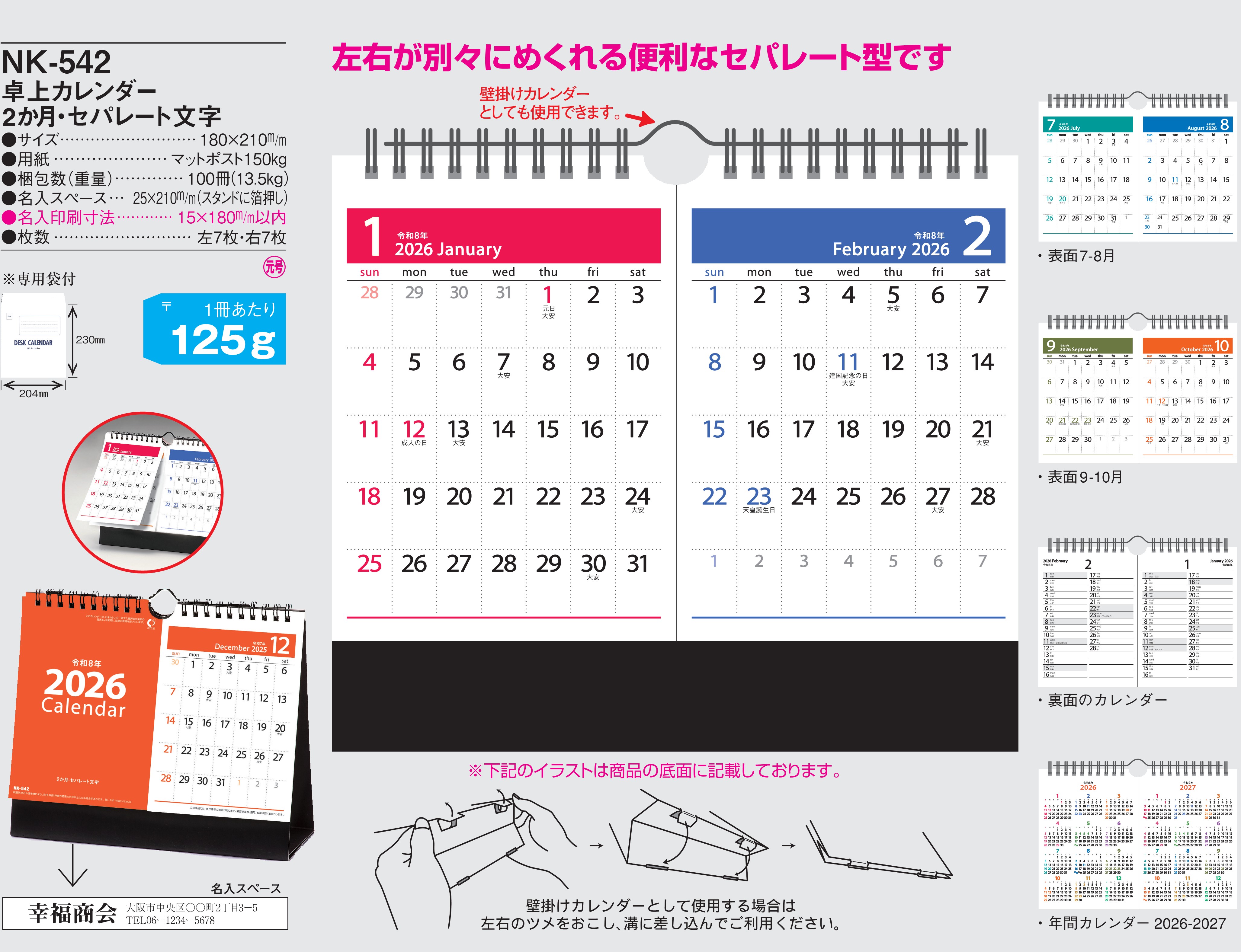 品番 : NK-542 卓上 2か月・セパレート文字 : 2026年版