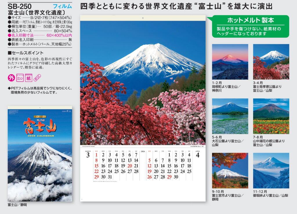 ・B2フィルム,2026年度 カレンダー,sb250, 最安値,sb-250,SB250,富士山〔世界文化遺産〕 フィルム