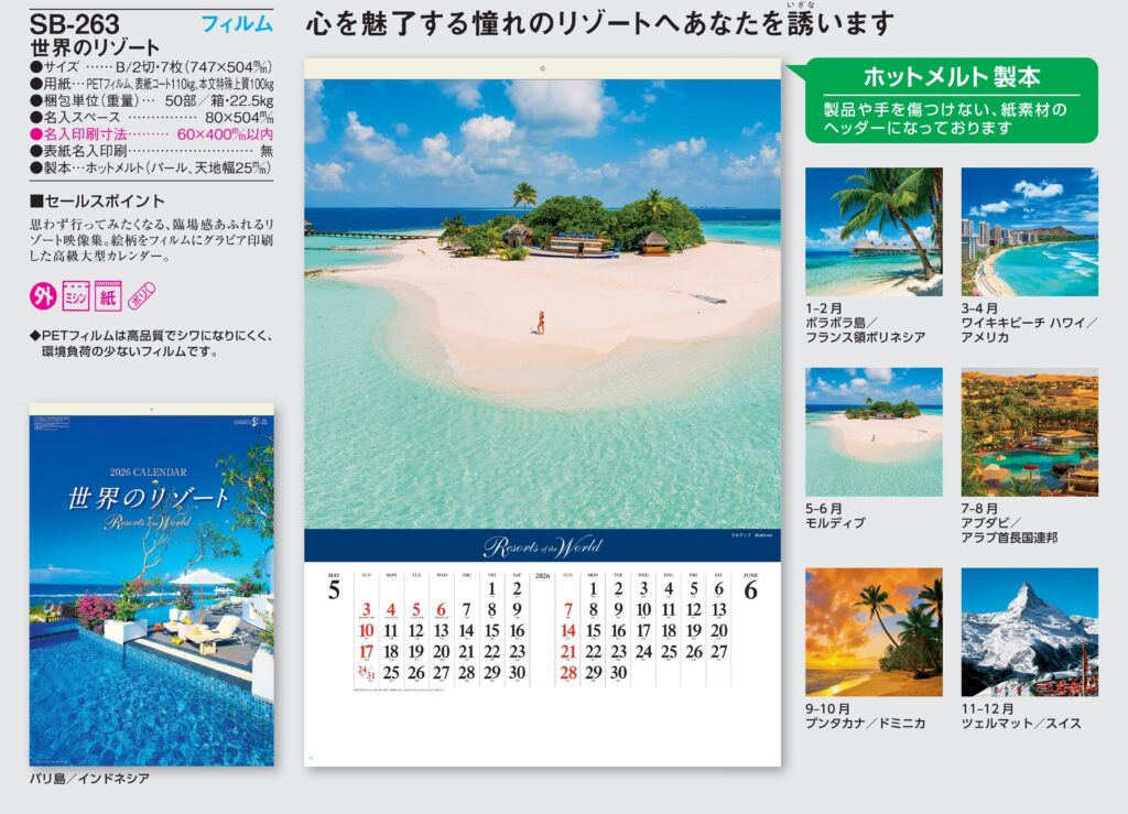 ・B2フィルム,2026年度 カレンダー,sb263, 最安値,sb-263,SB263,世界のリゾート フィルム