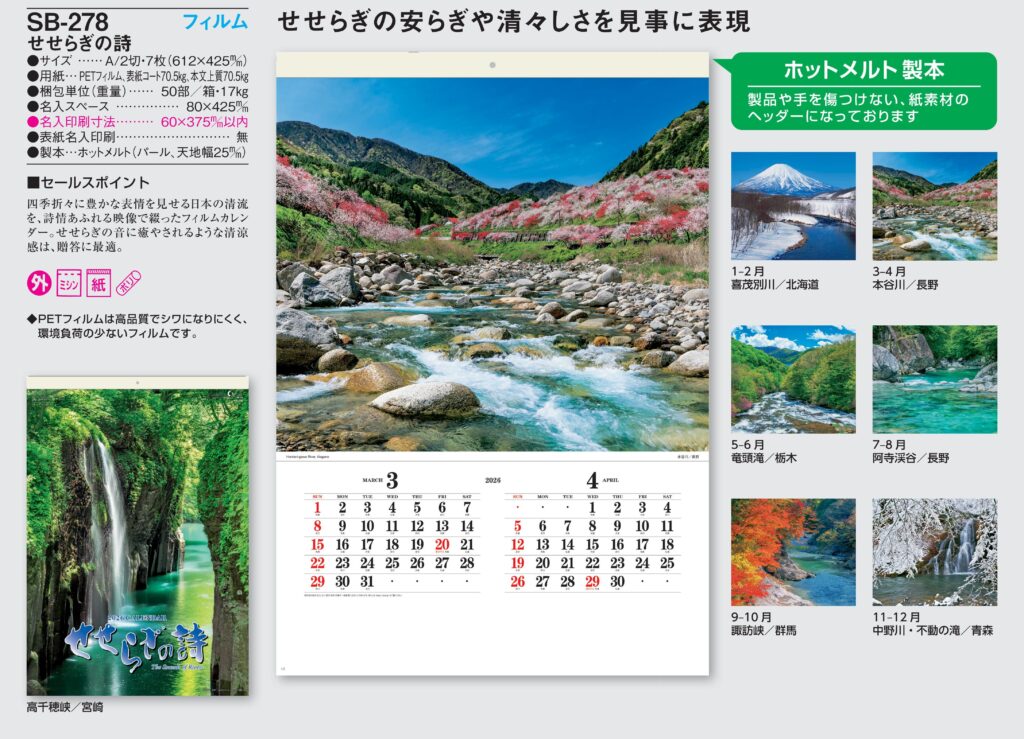 ・ -,2026年度 カレンダー,sb278, 最安値,sb-278,SB278,せせらぎの詩 フィルム