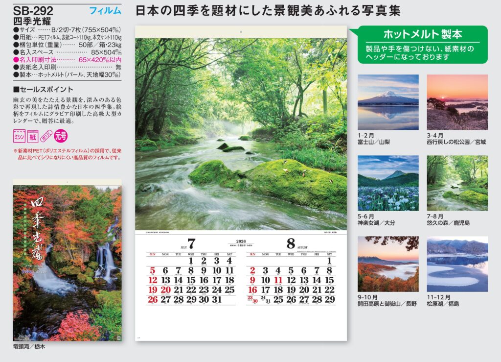 ・B2フィルム,2026年度 カレンダー,sb292, 最安値,sb-292,SB292,四季光耀 フィルム