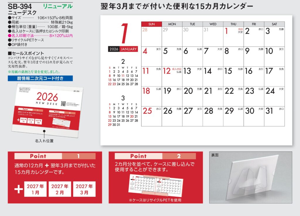 ・ ,2026年度 カレンダー,sb394, 最安値,sb-394,SB394,ニューデスク