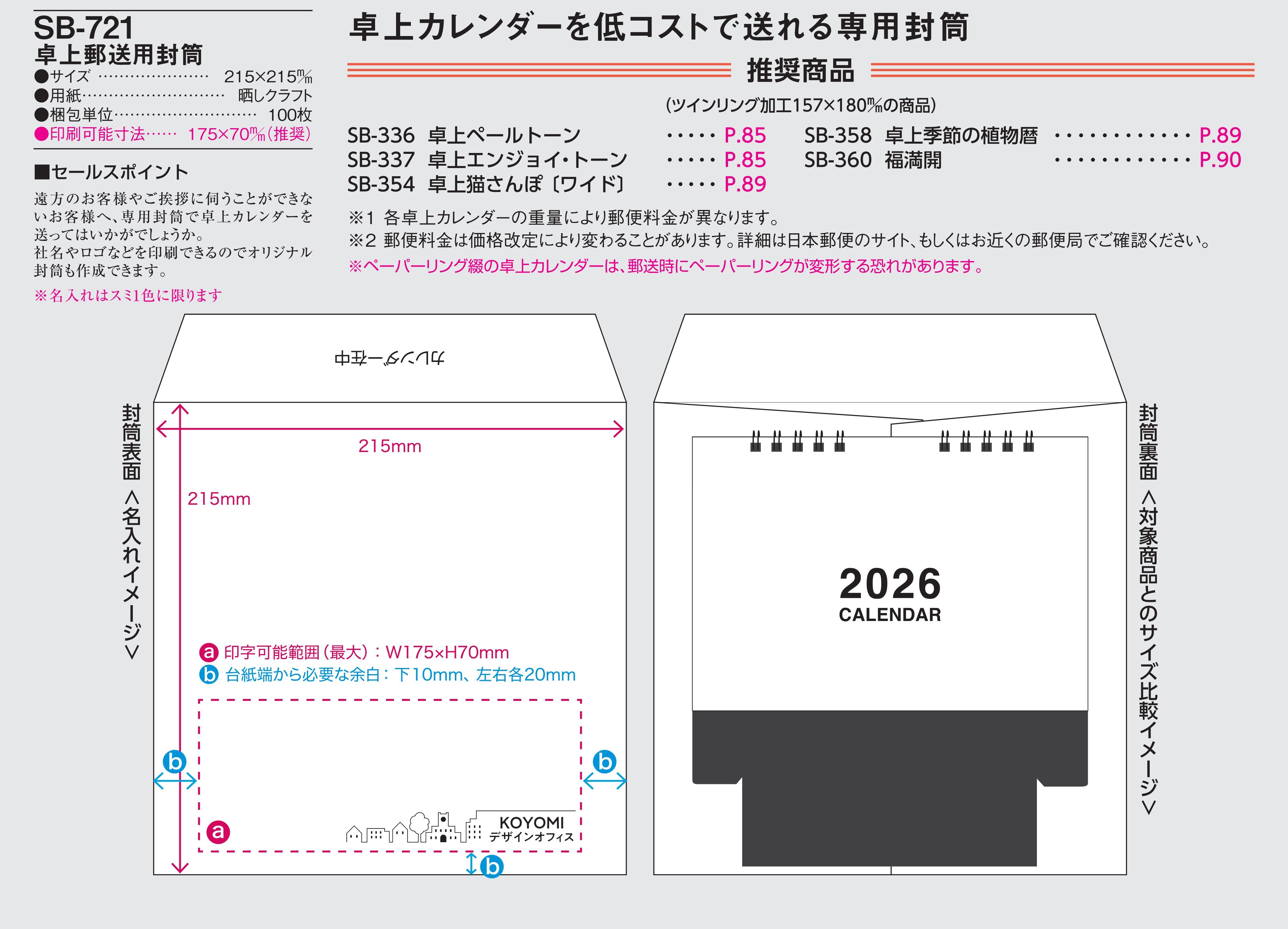 ,2026年度 カレンダー,sb721, 最安値,sb-721,SB721,卓上郵送専用封筒