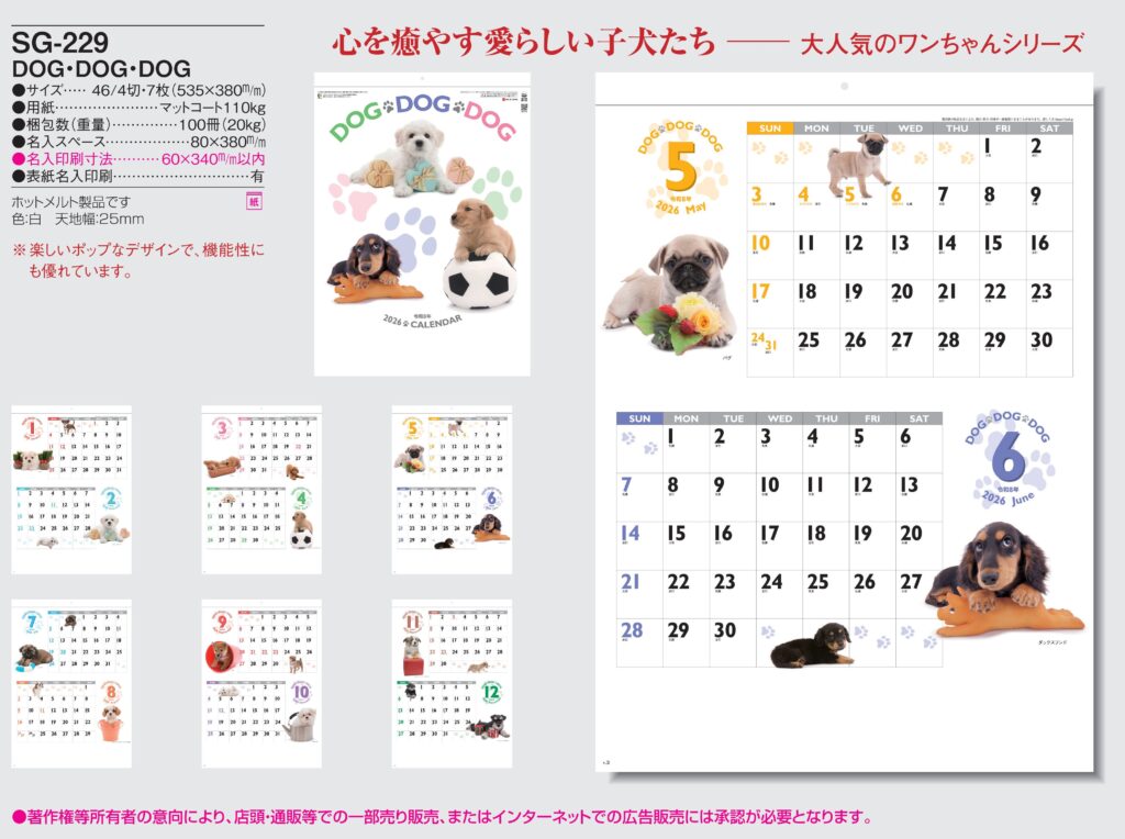 ・ -,2026年度 カレンダー,sg229, 最安値,sg-229,SG229,DOG・DOG・DOG