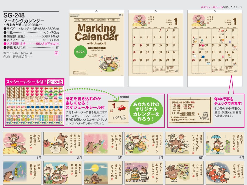 SG-248 , 46/4-13 , マーキングカレンダー ~うま吉と過ごす2026年~ 名入れカレンダー class=