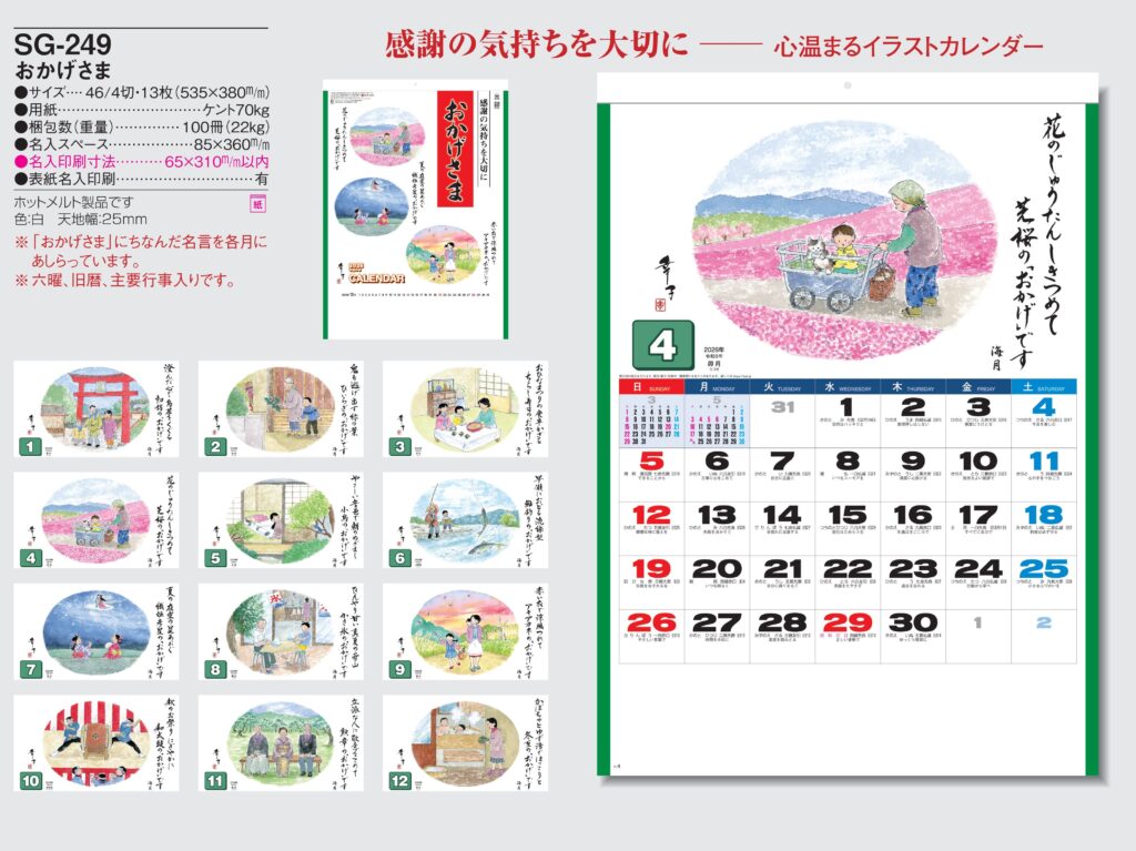 ・ -,2026年度 カレンダー,sg249, 最安値,sg-249,SG249,おかげさま
