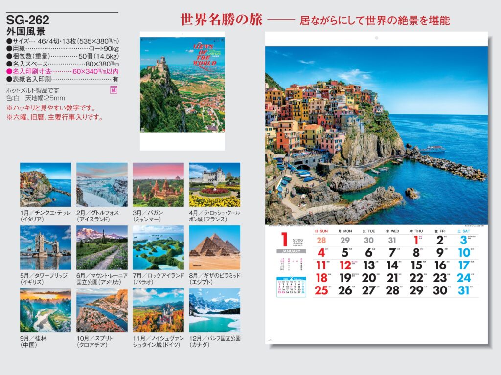 ・ -,2026年度 カレンダー,sg262, 最安値,sg-262,SG262,外国風景