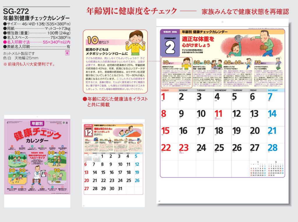 ・ -,2026年度 カレンダー,sg272, 最安値,sg-272,SG272,年齢別健康チェックカレンダー