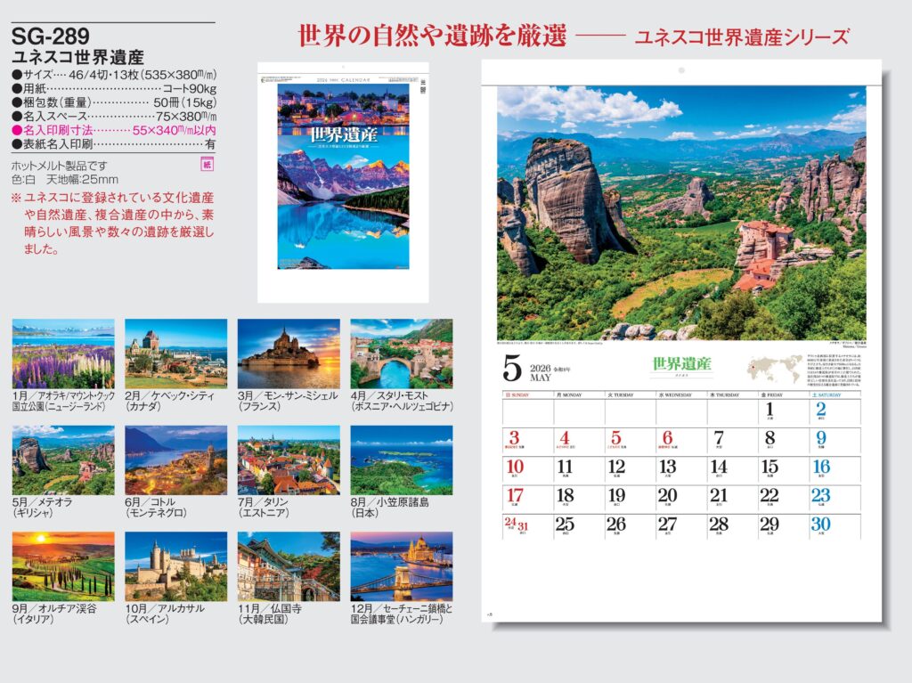 ・ -,2026年度 カレンダー,sg289, 最安値,sg-289,SG289,ユネスコ世界遺産