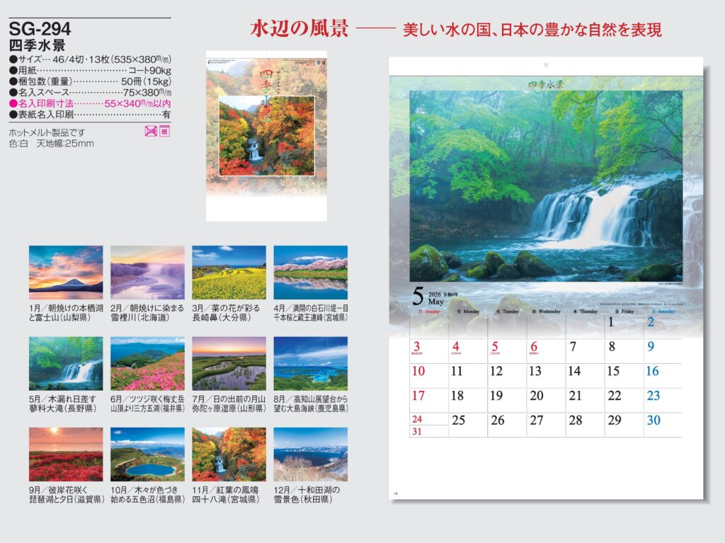 ・ -,2026年度 カレンダー,sg294, 最安値,sg-294,SG294,四季水景
