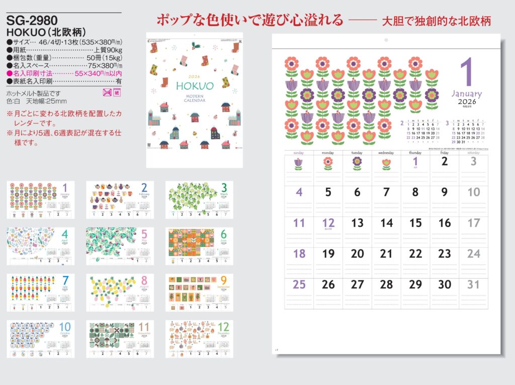 部屋にカレンダーがあると、そこに滞在する時間がますます楽しくなる。 SG298
