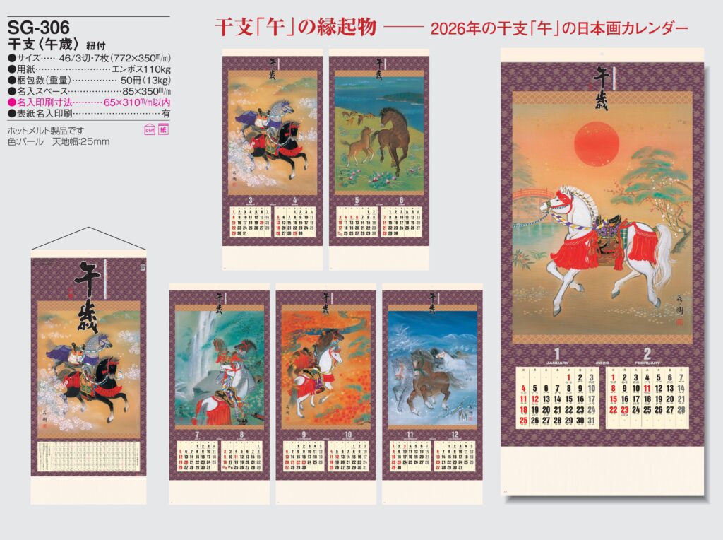 SG-306 , 46/3-7 , 干支 〈午歳〉 紐付 名入れカレンダー class=