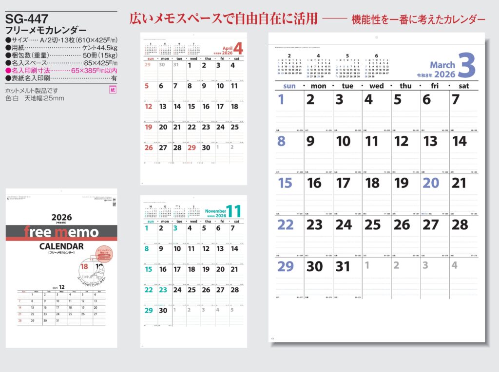 ・ -,2026年度 カレンダー,sg447, 最安値,sg-447,SG447,フリーメモカレンダー