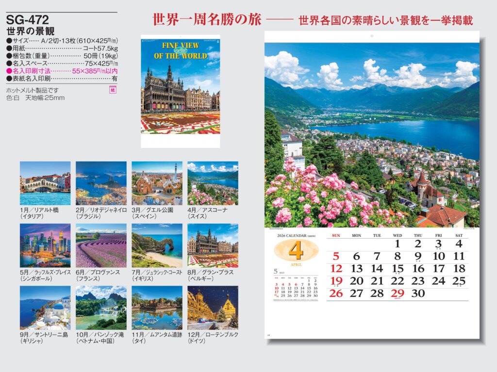 ・ -,2026年度 カレンダー,sg472, 最安値,sg-472,SG472,世界の景観