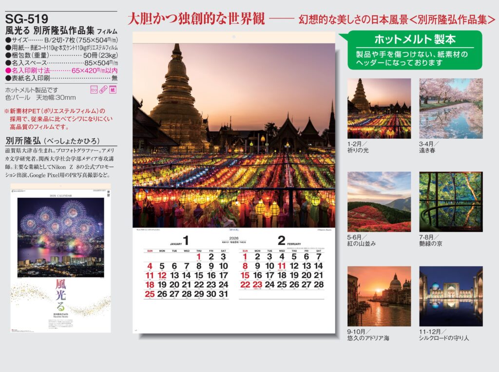 ・B2フィルム,2026年度 カレンダー,sg519, 最安値,sg-519,SG519,風光る 別所隆弘作品集