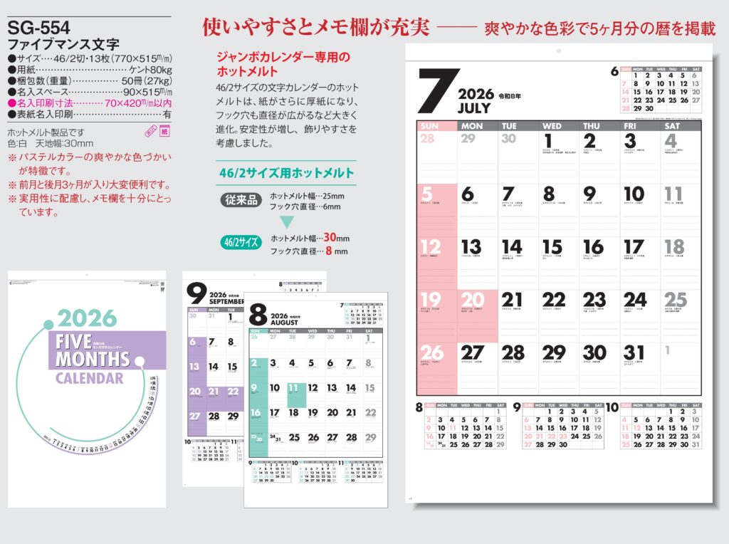 ・ジャンボ文字カレンダー,2026年度 カレンダー,sg554, 最安値,sg-554,SG554,ファイブマンス文字