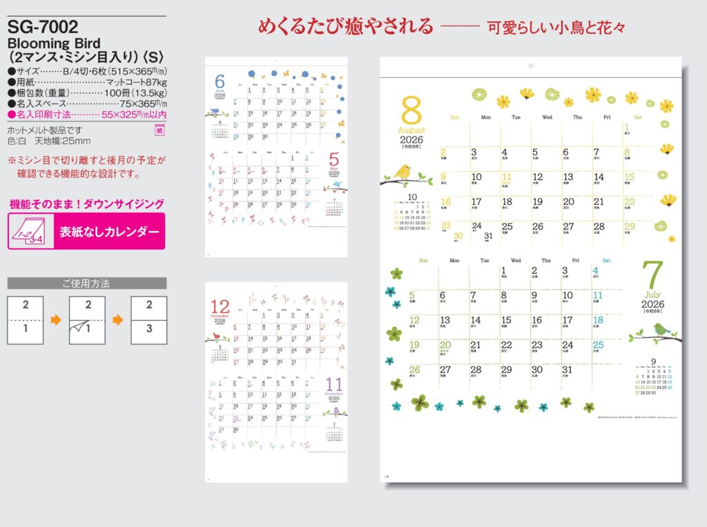 ・ -,2026年度 カレンダー,sg7002, 最安値,sg-7002,SG002,Blooming Bird(2マンス・ミシン目入り)〈S〉