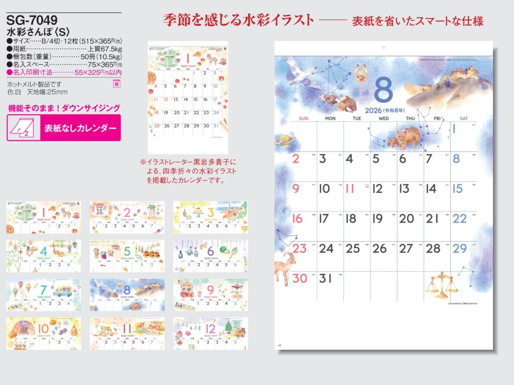 ・ -,2026年度 カレンダー,sg7049, 最安値,sg-7049,SG049,水彩さんぽ〈S〉