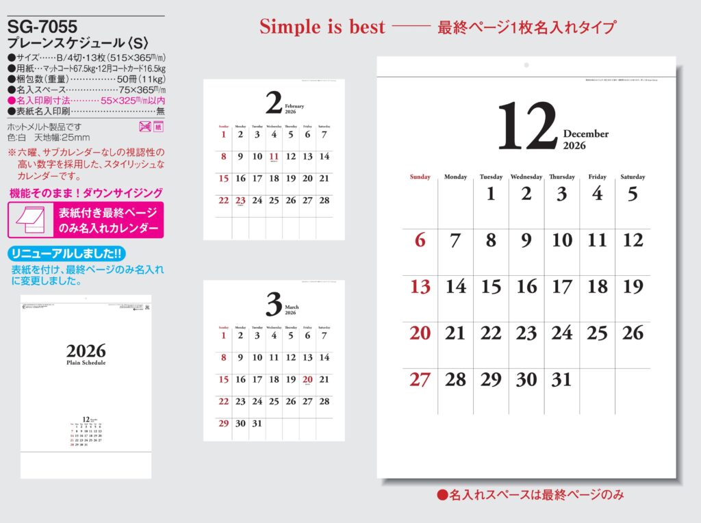 ・ -,2026年度 カレンダー,sg7055, 最安値,sg-7055,SG055,プレーンスケジュール〈S〉