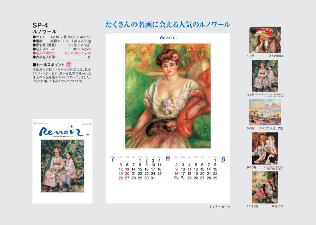 ・名画,2026年度 カレンダー,sp004, 最安値,sp-004,SP004,ルノワール