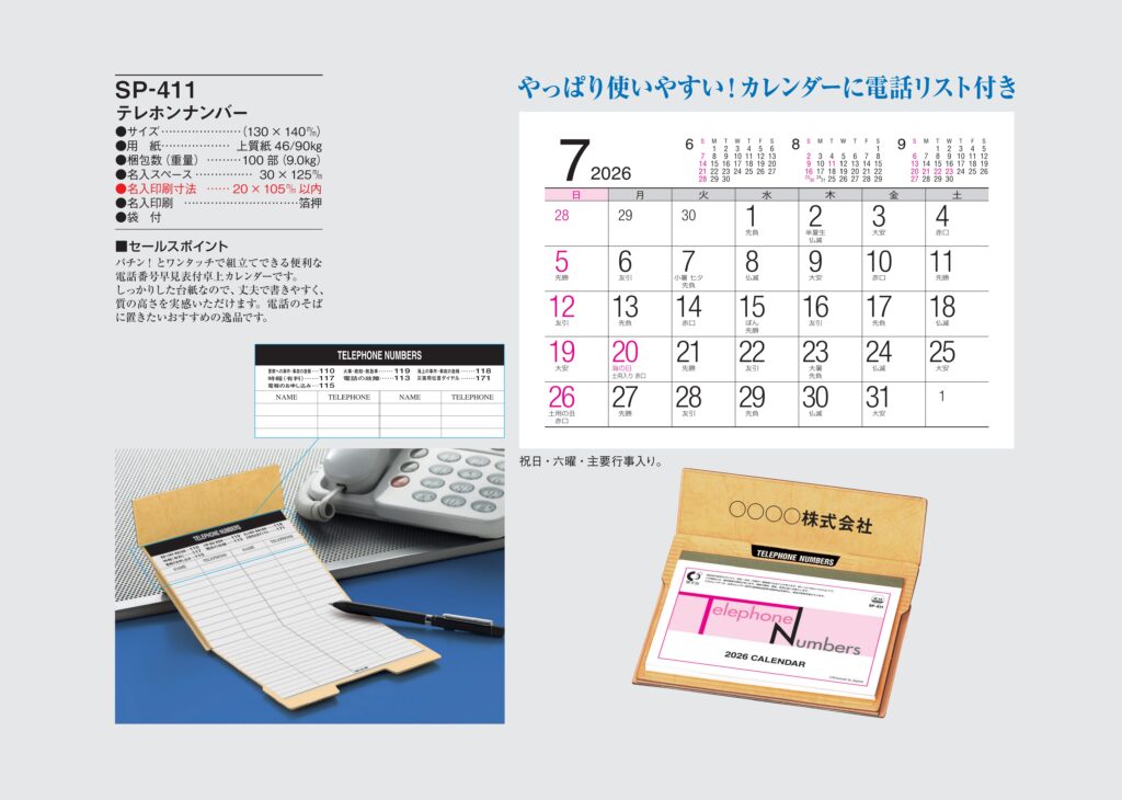 ・ ,2026年度 カレンダー,sp411, 最安値,sp-411,SP411,テレホンナンバー
