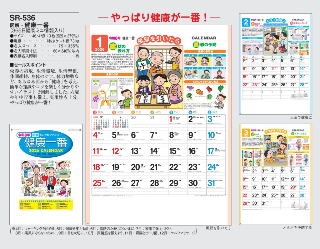 SR-536 , 46/4-13枚 , 図解 健康一番 名入れカレンダー class=