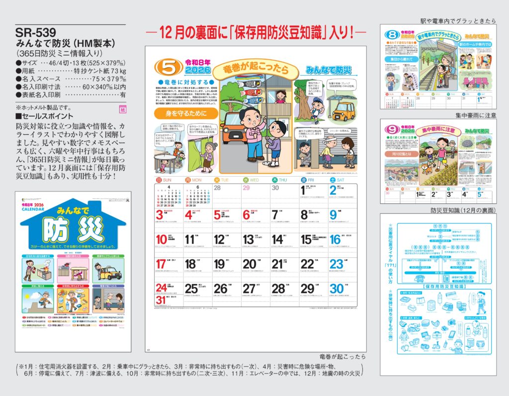 ・ -,2026年度 カレンダー,sr539, 最安値,sr-539,SR539,みんなで防災(ホットメルト)