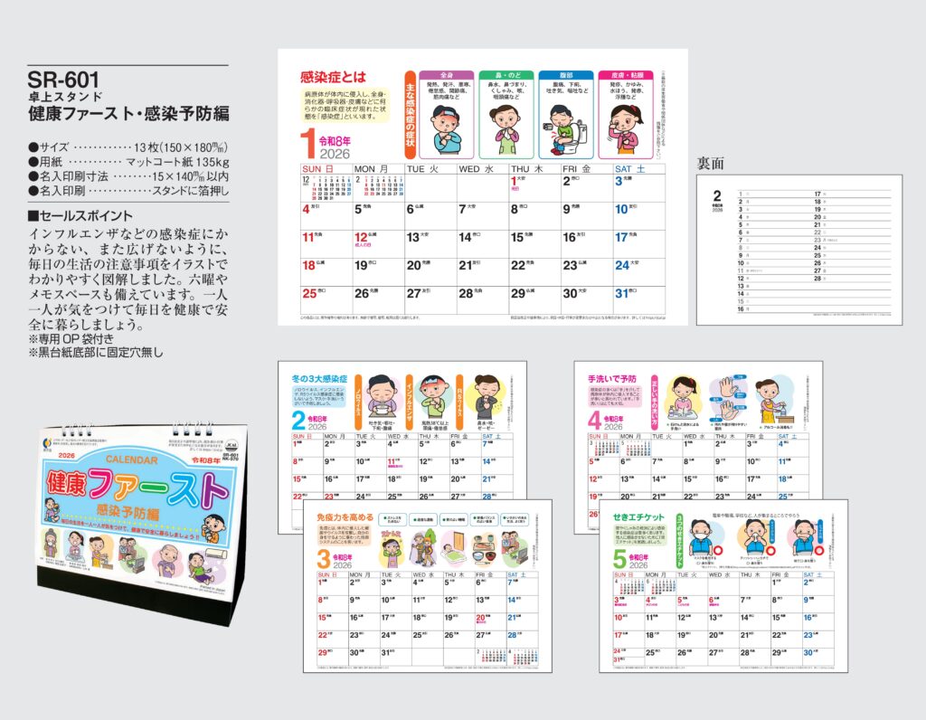 ・ ,2026年度 カレンダー,sr601, 最安値,sr-601,SR601,卓上健康ファースト・感染予防編