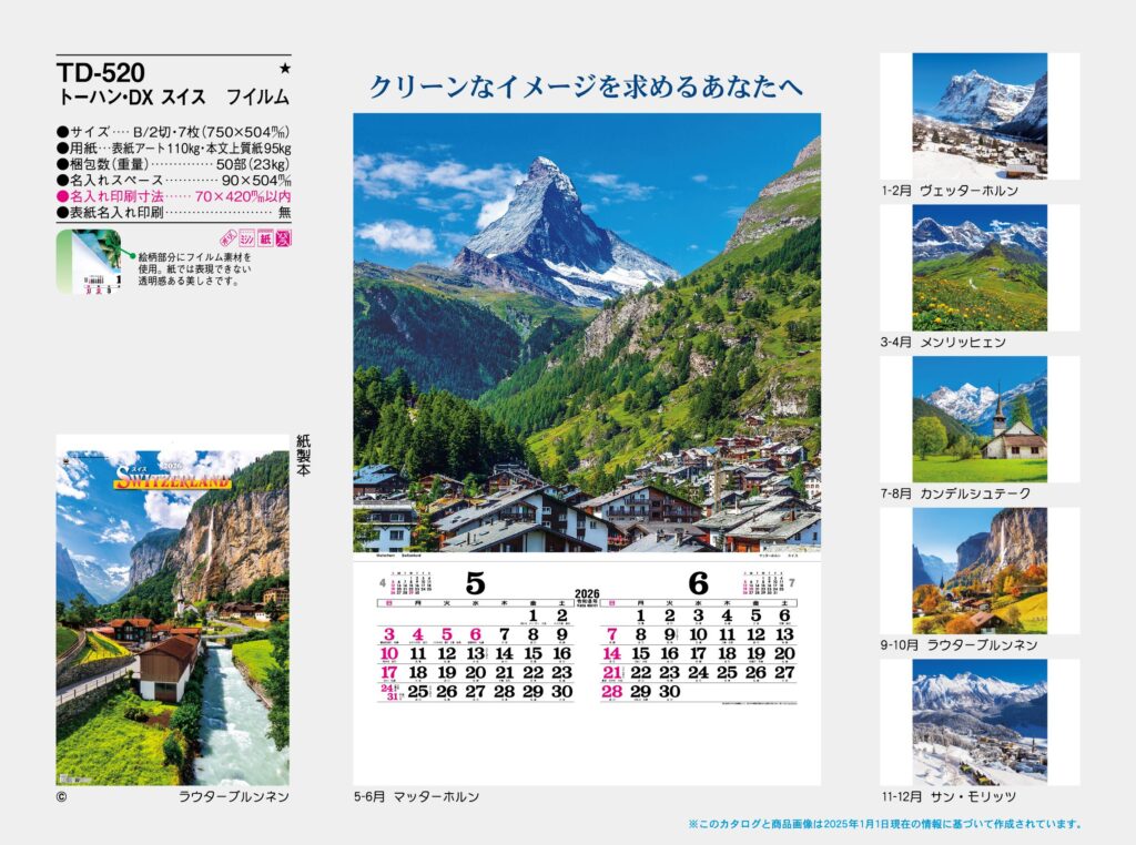 ・B2フィルム,2026年度 カレンダー,td520, 最安値,td-520,TD520,トーハン・DXスイスフイルム