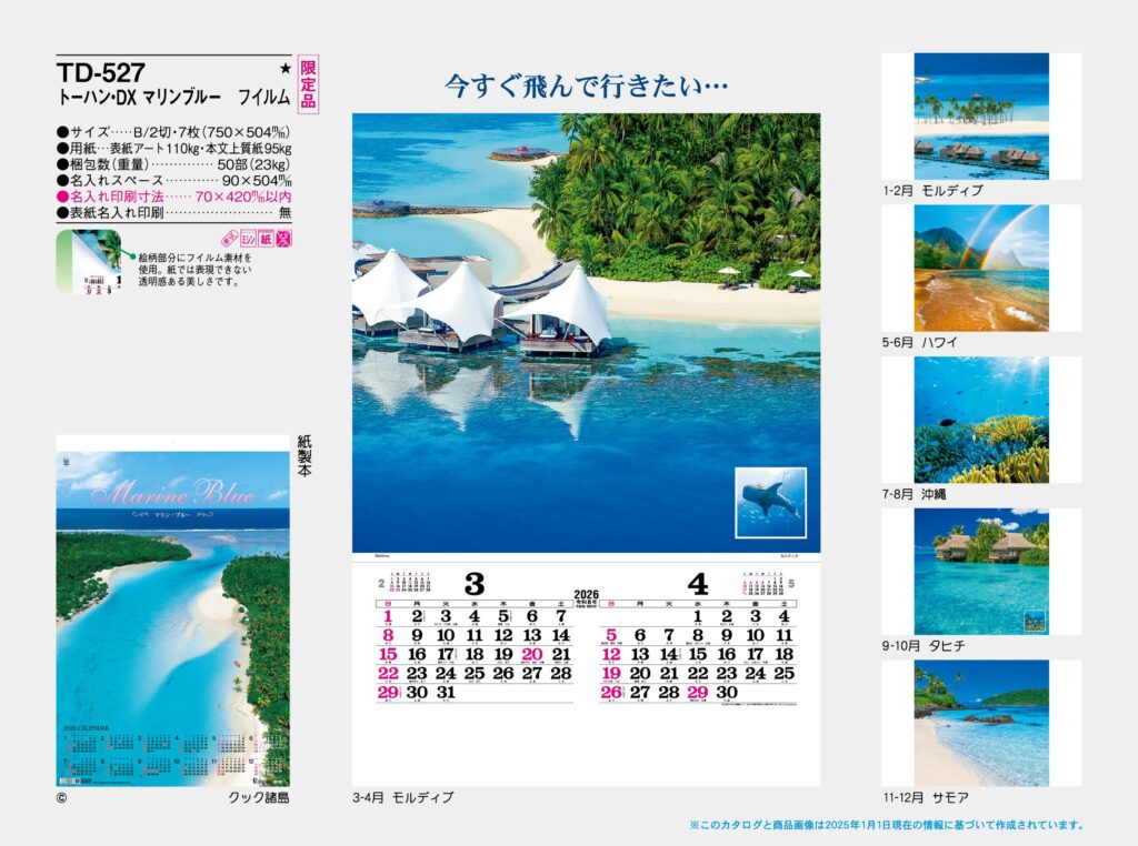 TD-527 , B/2-7H , トーハン・DXマリンブルーフイルム 名入れカレンダー class=