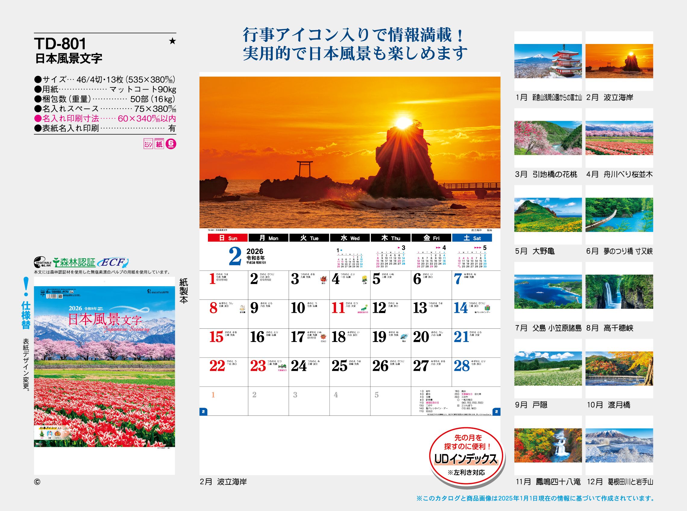 ・ -,2026年度 カレンダー,td801, 最安値,td-801,TD801,日本風景文字