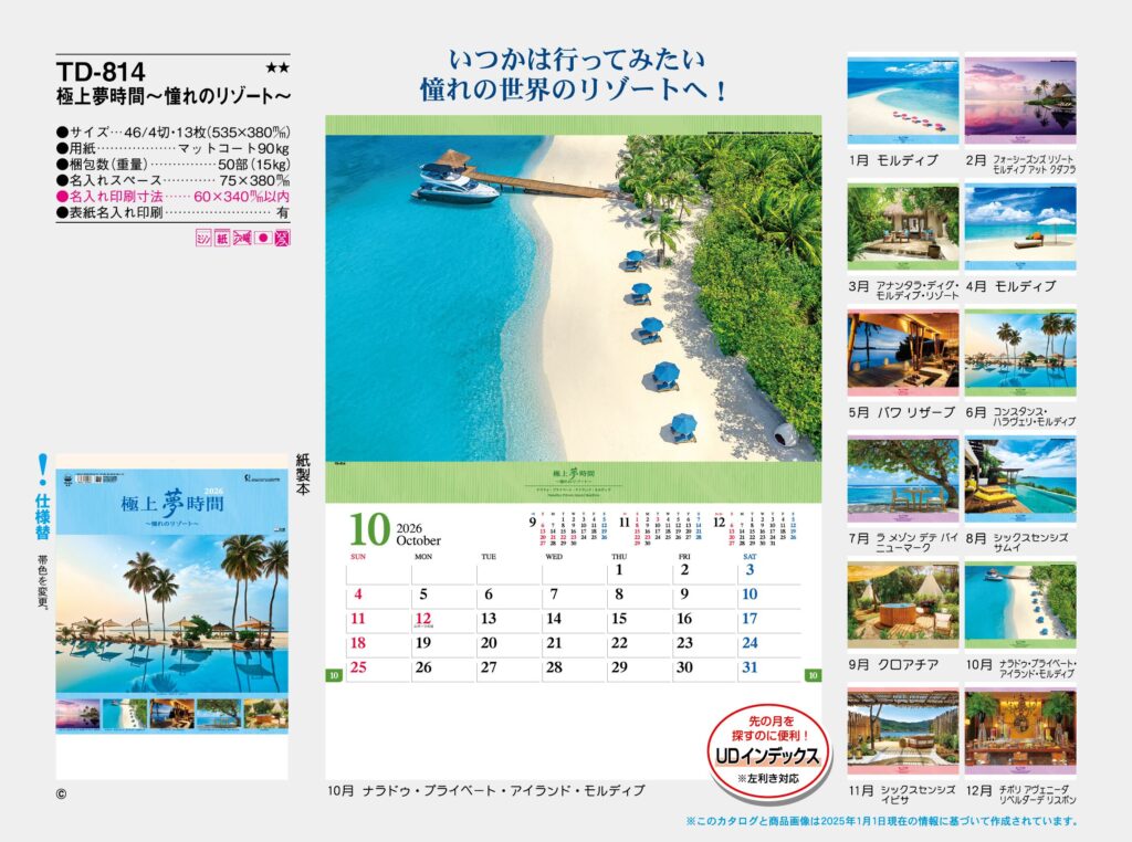 ・ -,2026年度 カレンダー,td814, 最安値,td-814,TD814,極上夢時間~憧れのリゾート~