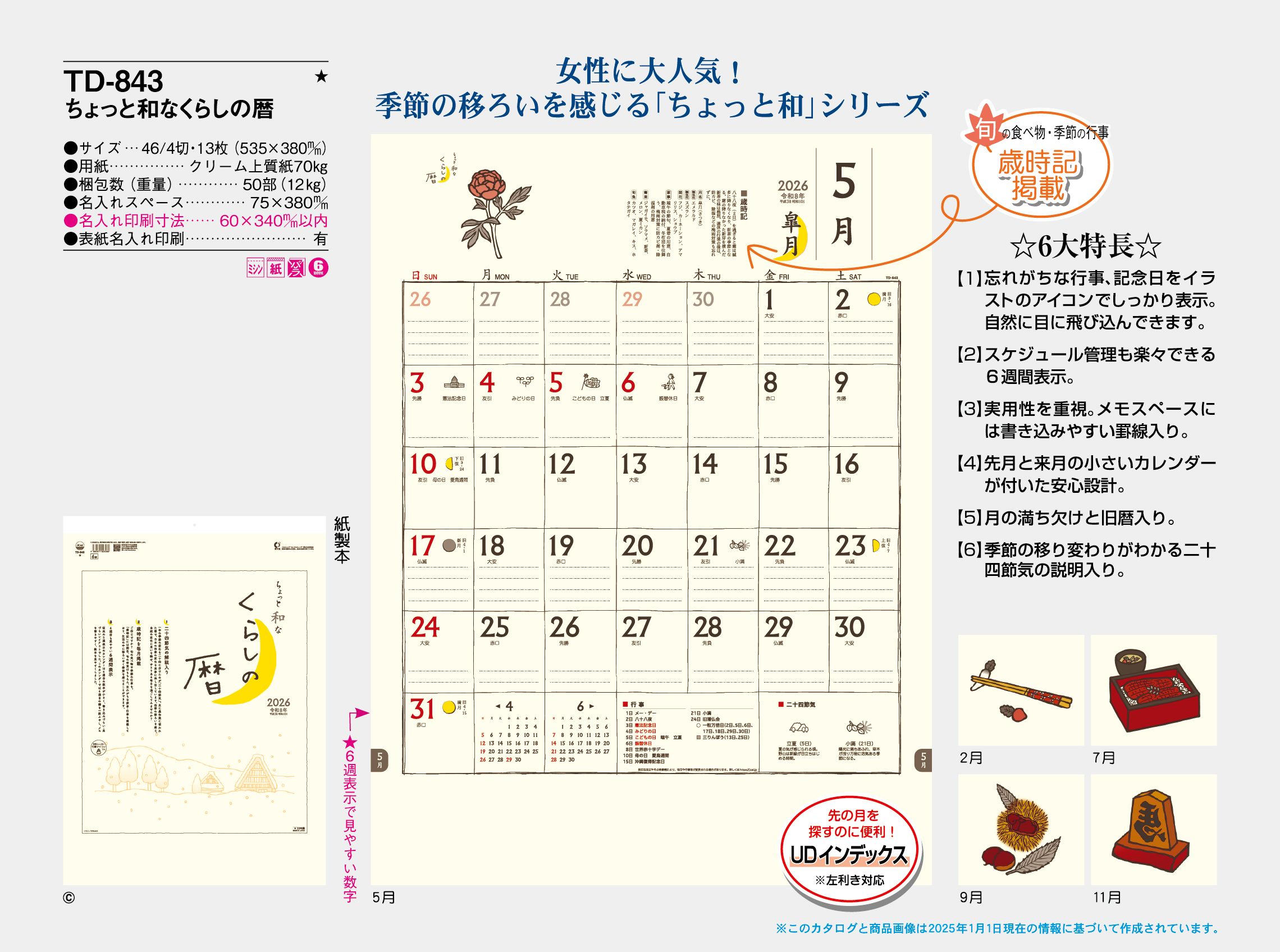 ・ -,2026年度 カレンダー,td843, 最安値,td-843,TD843,ちょっと和なくらしの暦